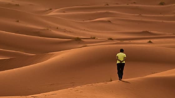 En el desierto arenoso (el Sahara, el más famoso; pero también el Gobi en Asia o el Gran Desierto Arenoso en Australia) el calor es siempre muy intenso y se combina con la aridez dada por la arena que hace que el aire sea seco. Para enfrentarse a este tipo de desierto, en su mochila debe llevar: pantalones cómodos y largos, sombreros (además de velos o pañuelos para protegerse de los insectos y el polvo), calzado de trekking cerrado, gafas de sol, crema solar. A esto hay que añadir: el saco de dormir y una chaquetapara afrontar la tarde (o la noche) que en el desierto siempre es muy fría; brújulas, dispositivos GPS para el teléfono móvil, cargadores inalámbricos, botiquines de primeros auxilios contra las picaduras de insectos y serpientes. Y, obviamente, varias botellas de agua y alimentos proteínicos secos que no se estropeen con el calor.